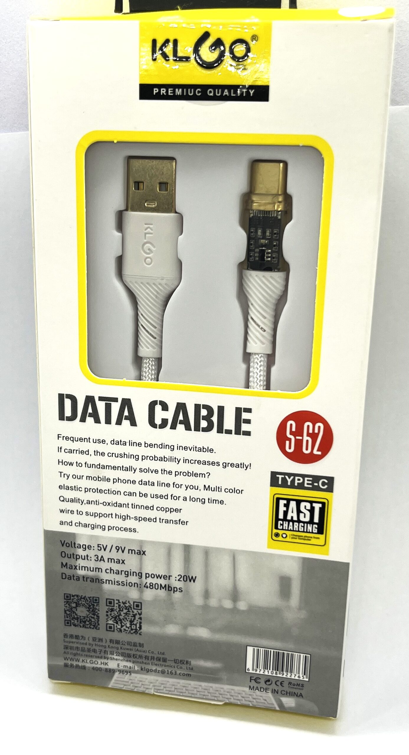 Kabel USB typ A do USB-C 3.1 szybki mocny 20W 3A firmy KL_GO do XIAOMI REDMI SAMSUNG IPHONE